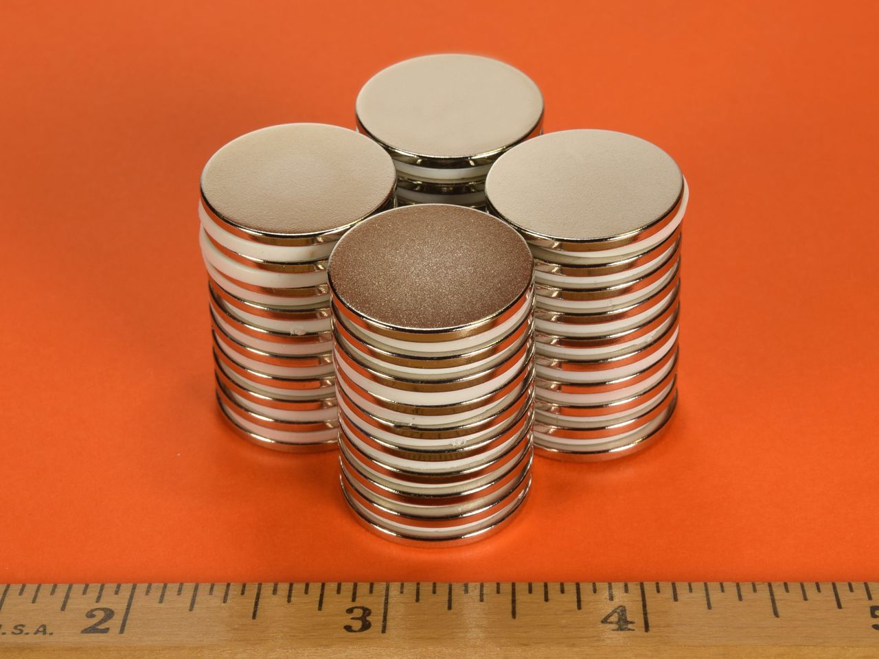 Coating: Most neodymium magnets are plated or coated in order to protect the magnet material from corrosion. Check out our Custom Magnets for unplated magnets and other coatings not stocked for this size magnet. Learn more about all available platings and coating in our What Magnet Coating Should I Use? article.Nickel-Copper-Nickel (Ni-Cu-Ni)