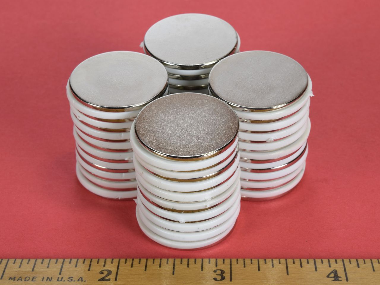 Coating: Most neodymium magnets are plated or coated in order to protect the magnet material from corrosion. Check out our Custom Magnets for unplated magnets and other coatings not stocked for this size magnet. Learn more about all available platings and coating in our What Magnet Coating Should I Use? article.Nickel-Copper-Nickel (Ni-Cu-Ni)