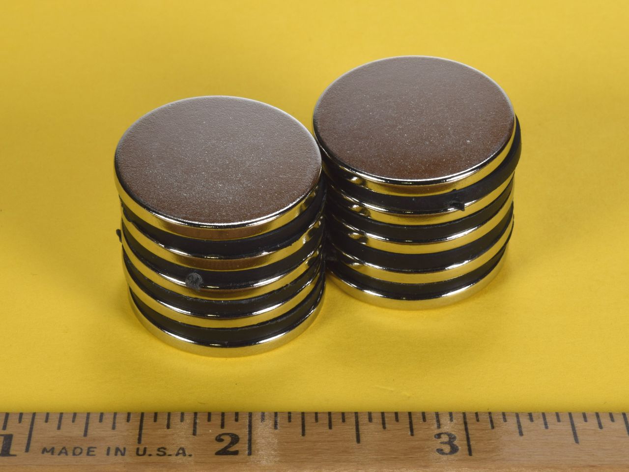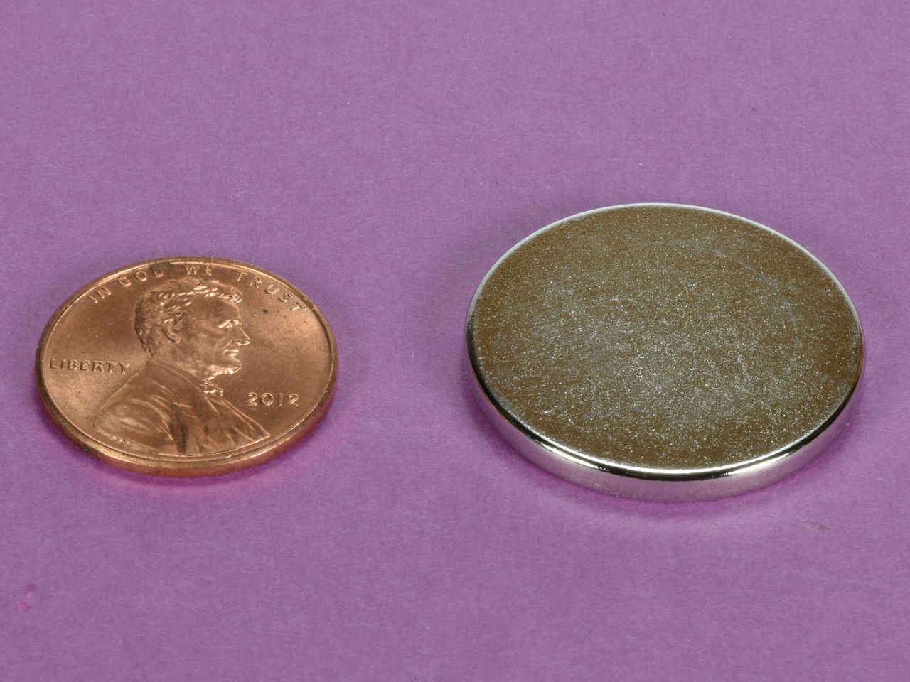 Our 1" diameter disc magnets in 1/10" thickness. Useful for a wide range of applications.