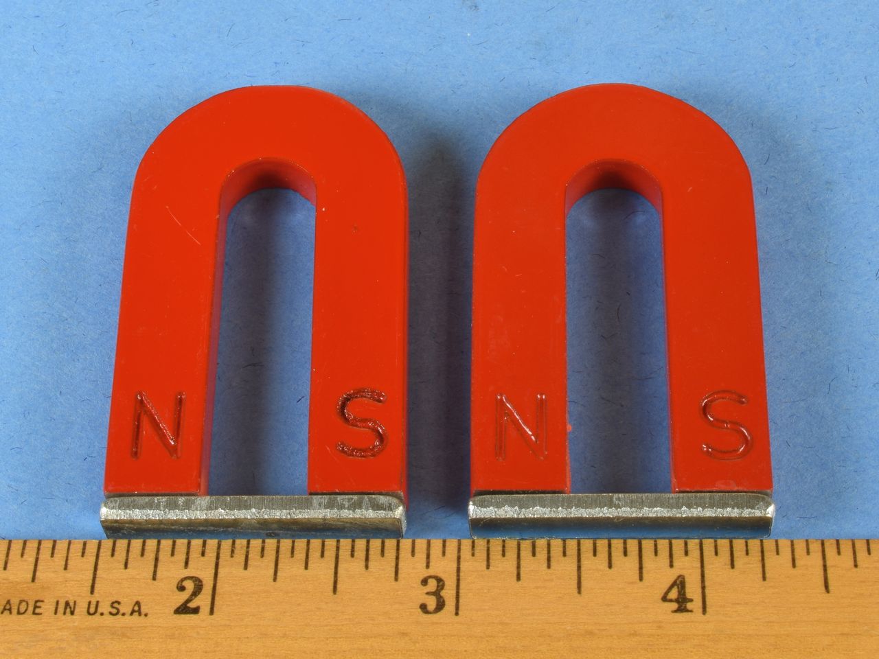 This horseshoe magnet has straight legs that have the poles marked with an "N" and "S". Made from traditional Alnico "metal" magnet material. Comes complete with a keeper for storage. See our blog article on Horseshoe Magnets for more info!
