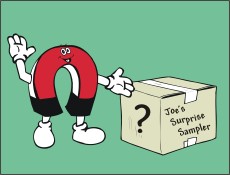 Joe's Surprise Sampler kit of neodymium magnets. By popular request, we are offering this "grab bag" of magnets at a bargain price. You will receive a collection of magnets valued much greater than the price of this sampler pack of magnets. The magnets are all new and in perfect condition. What exactly is included in the bag is entirely up to Joe Magneato.
