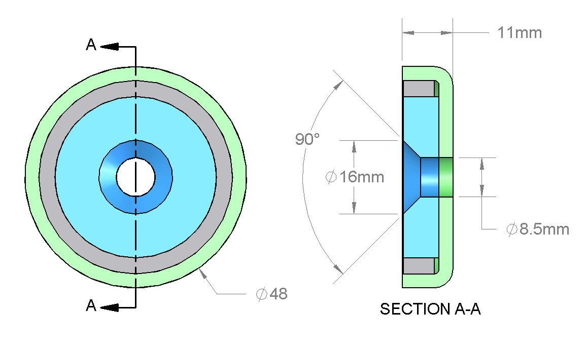 Hole Angle: This is the hole angle of the countersunk hole.90°