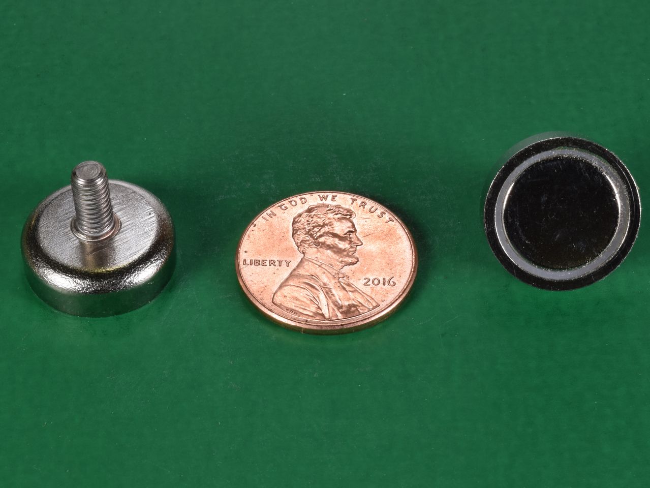 The MM-C style is a flat mounting magnet with male stud permanently attached to the mount. Perfect for putting through a hole and fastening with a nut to attach any hardware assembly.
