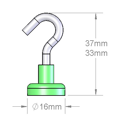 Here we offer one of the most useful magnets known to man - an incredibly powerful magnet with a hook attached. Need to hang something in or on your locker? fridge? filing cabinet? This is what you need. If you"ve ever fought to position a drop light while you were working on a car, or anything for that matter, you understand how valuable one of these hooks could be for unrestricted light placement. The possible uses for these great hook magnets are unlimited! The hook, magnet and mount are all nickel plated to resist corrosion and to provide that nice shiny, silver finish.