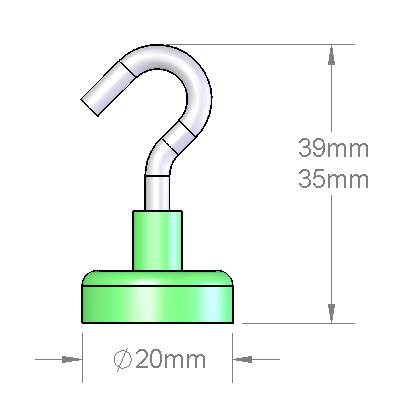 By incredibly popular request, here we offer one of the most useful magnets known to man - an incredibly powerful magnet with a hook attached. Need to hang something in or on your locker? fridge? filing cabinet? This is what you need. If you"ve ever fought to position a drop light while you were working on a car, or anything for that matter, you understand how valuable one of these hooks could be for unrestricted light placement. The possible uses for these great hook magnets are unlimited! The hook, magnet and mount are all nickel plated to resist corrosion and to provide that nice shiny, silver finish.