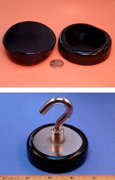 The MM-RC-75 is a durable rubber cover designed to fit over the base of any of our 75mm diameter Mounting Magnets. The cover protects the surface the assembly is mounted on and also keeps the assembly from sliding. The rubber is approximately 0.037" (1mm) thick. The photo shows the rubber cover on one of our MM-E-75 hooks. The hook assembly is sold separately.