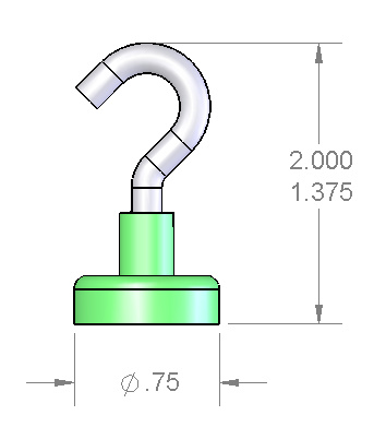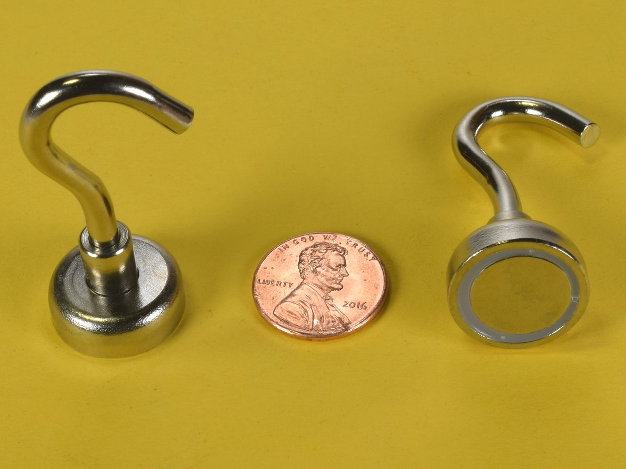 Here we offer one of the most useful magnets known to man - an incredibly powerful magnet with a hook attached. Need to hang something in or on your locker? fridge? filing cabinet? This is what you need. If you've ever fought to position a drop light while you were working on a car, or anything for that matter, you understand how valuable one of these hooks could be for unrestricted light placement. The possible uses for these great hook magnets are unlimited! The hook, magnet and mount are all nickel plated to resist corrosion and to provide that nice shiny, silver finish.