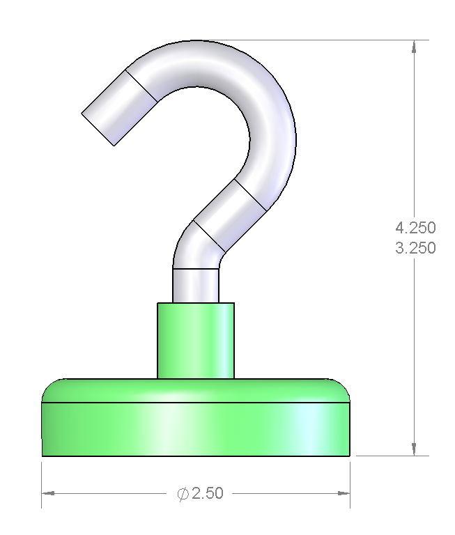 Here we offer one of the most useful magnets known to man - an incredibly powerful magnet with a hook attached. Need to hang something in or on your locker? fridge? filing cabinet? This is what you need. If you've ever fought to position a drop light while you were working on a car, or anything for that matter, you understand how valuable one of these hooks could be for unrestricted light placement. The possible uses for these great hook magnets are unlimited! The hook, magnet and mount are all nickel plated to resist corrosion and to provide that nice shiny, silver finish.