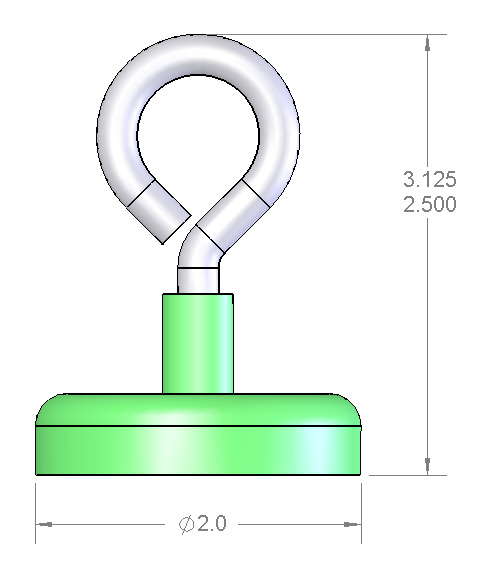 The MMS-G is an incredibly powerful magnet with an eye hook attached. Need to hang something in or on your locker? fridge? filing cabinet? This is the magnet you need! If you've ever fought to position a drop light while you were working on a car, or anything for that matter, you understand how valuable one of these magnetic eye hooks could be for unrestricted light placement. The possible uses for these great magnets are unlimited! The eye hook, magnet and mount are all nickel plated to resist corrosion and to provide that nice shiny, silver finish.