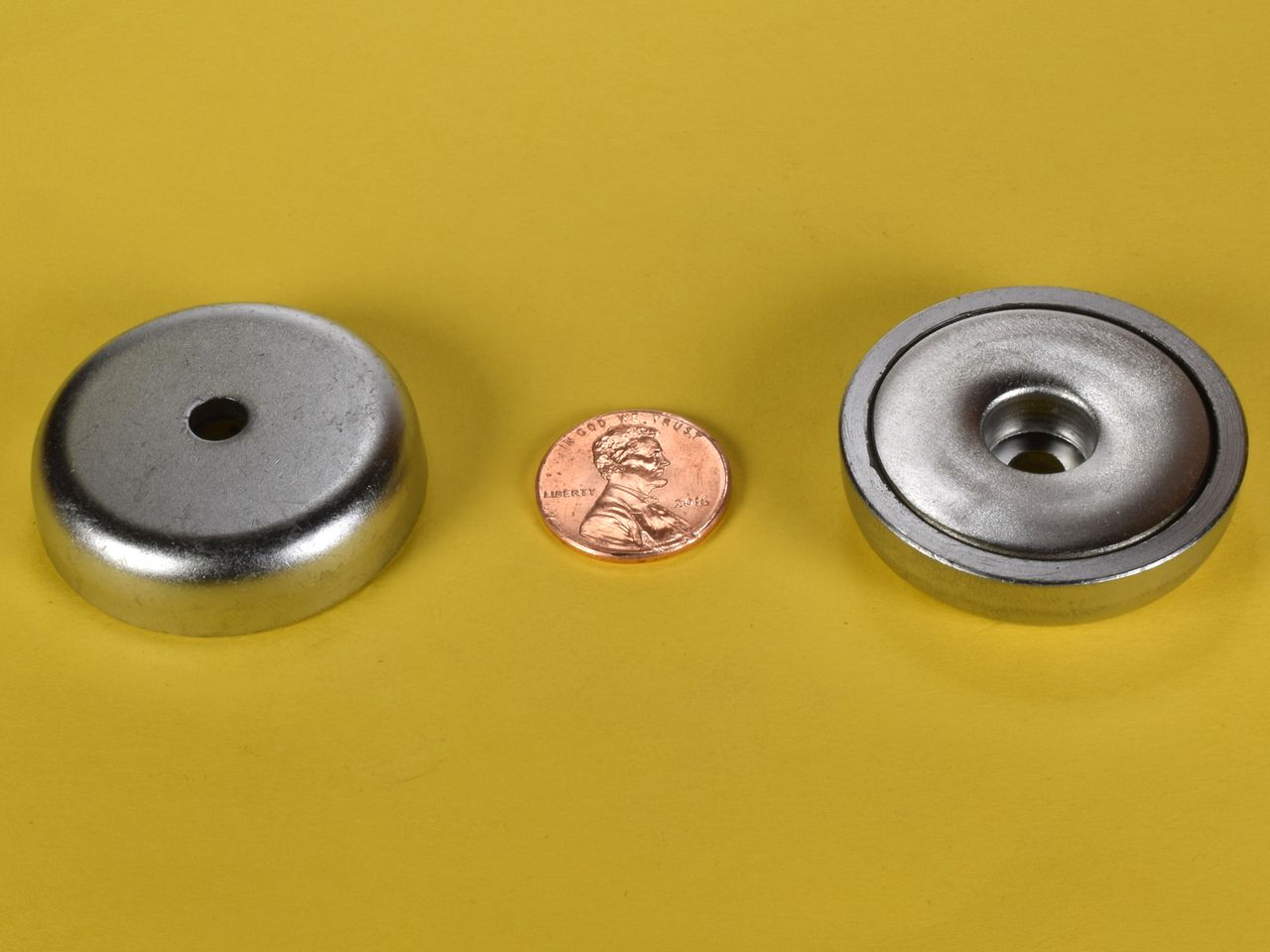 plated magnets that are exposed, with a nickel plated steel cup that the