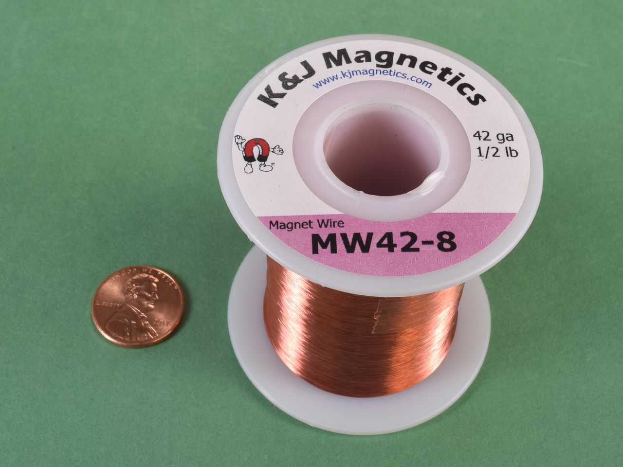 Magnet wire is copper wire coated with a very thin layer of insulation (it is not a magnet). It is used for various applications but is mostly used for constructing windings in transformers, inductors, motors, speakers, electromagnets, and much more! This is also available in a 1/4 lb spool, MW42-4.