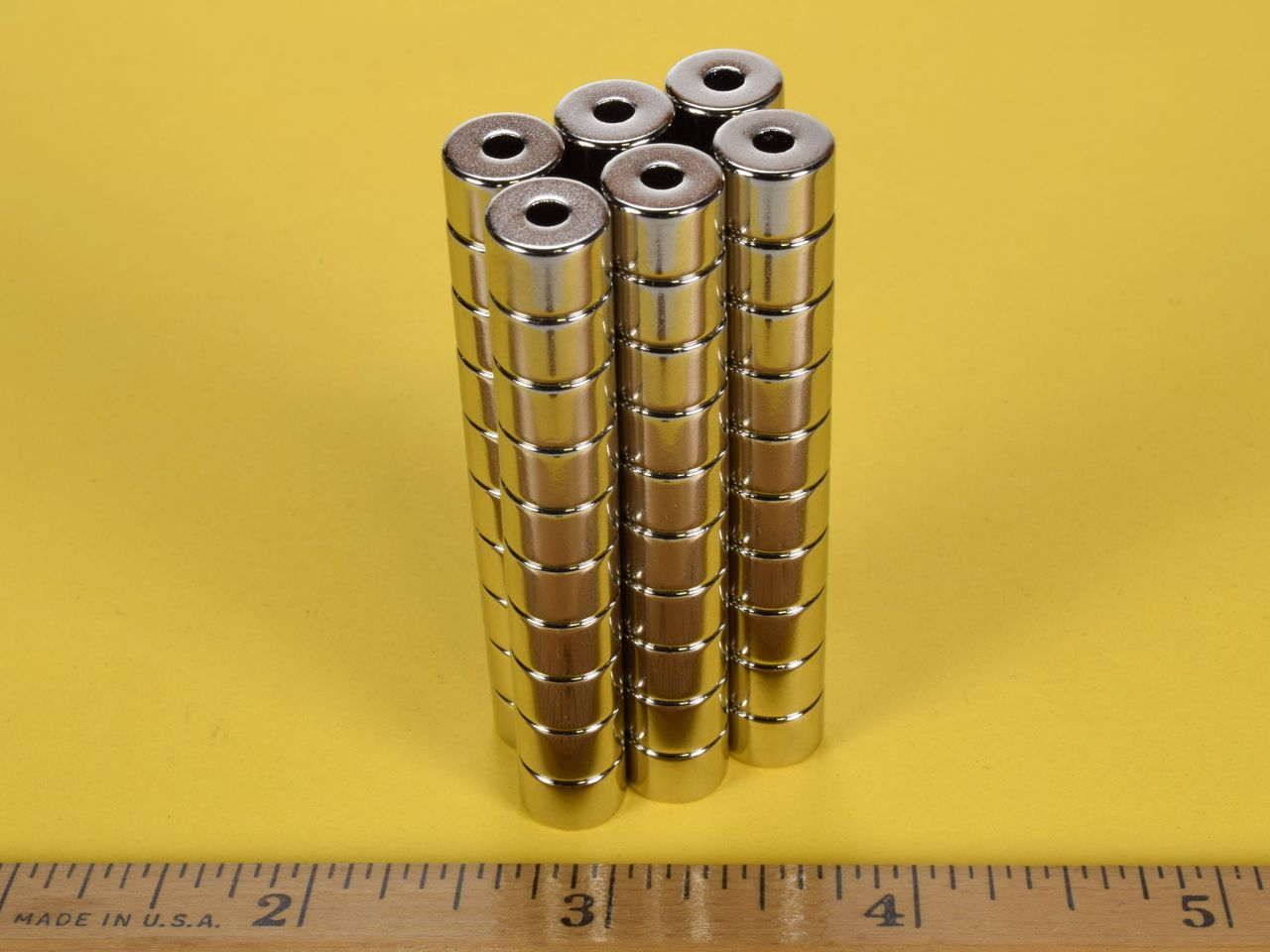 Coating: Most neodymium magnets are plated or coated in order to protect the magnet material from corrosion. Check out our Custom Magnets for unplated magnets and other coatings not stocked for this size magnet. Learn more about all available platings and coating in our What Magnet Coating Should I Use? article.Nickel-Copper-Nickel (Ni-Cu-Ni)