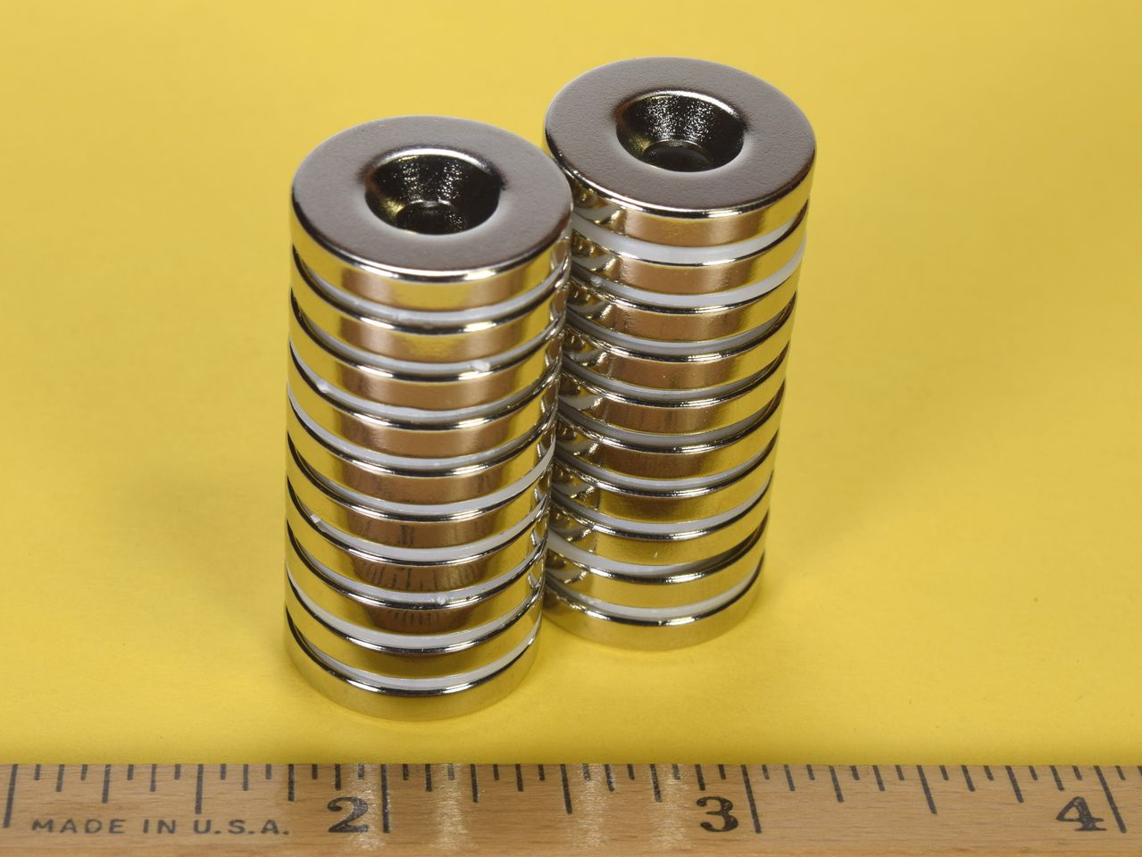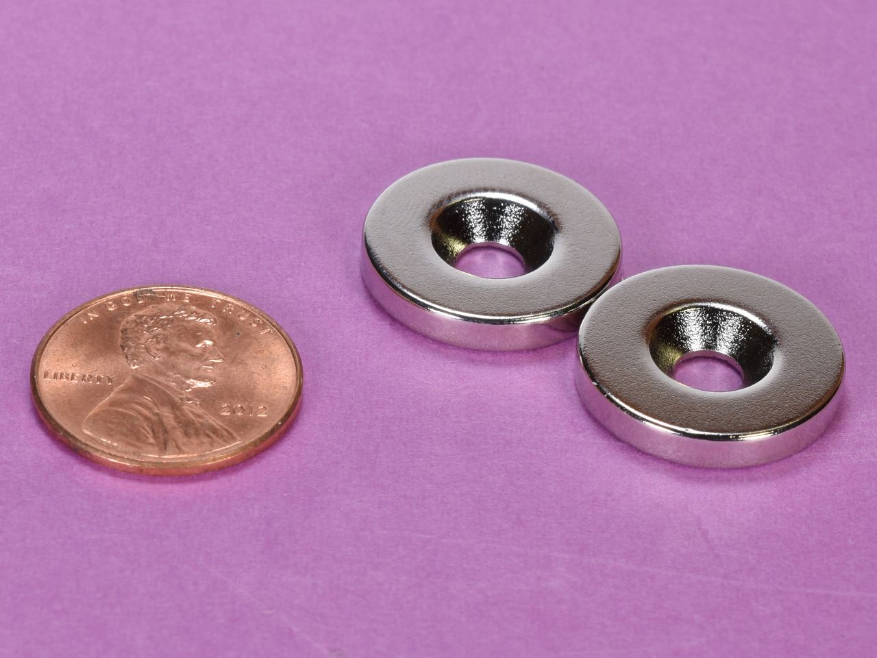 Strong countersunk ring magnets sized specifically for #8 flat-head screws.