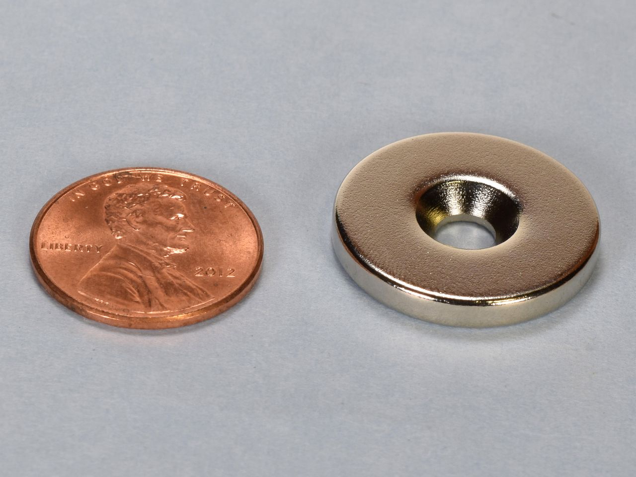 These are 7/8" diameter x 1/8" thick countersunk ring magnets sized to accept a #8 countersunk screw. The RE22CS-S-N52 is magnetized with the south pole on the countersink side.