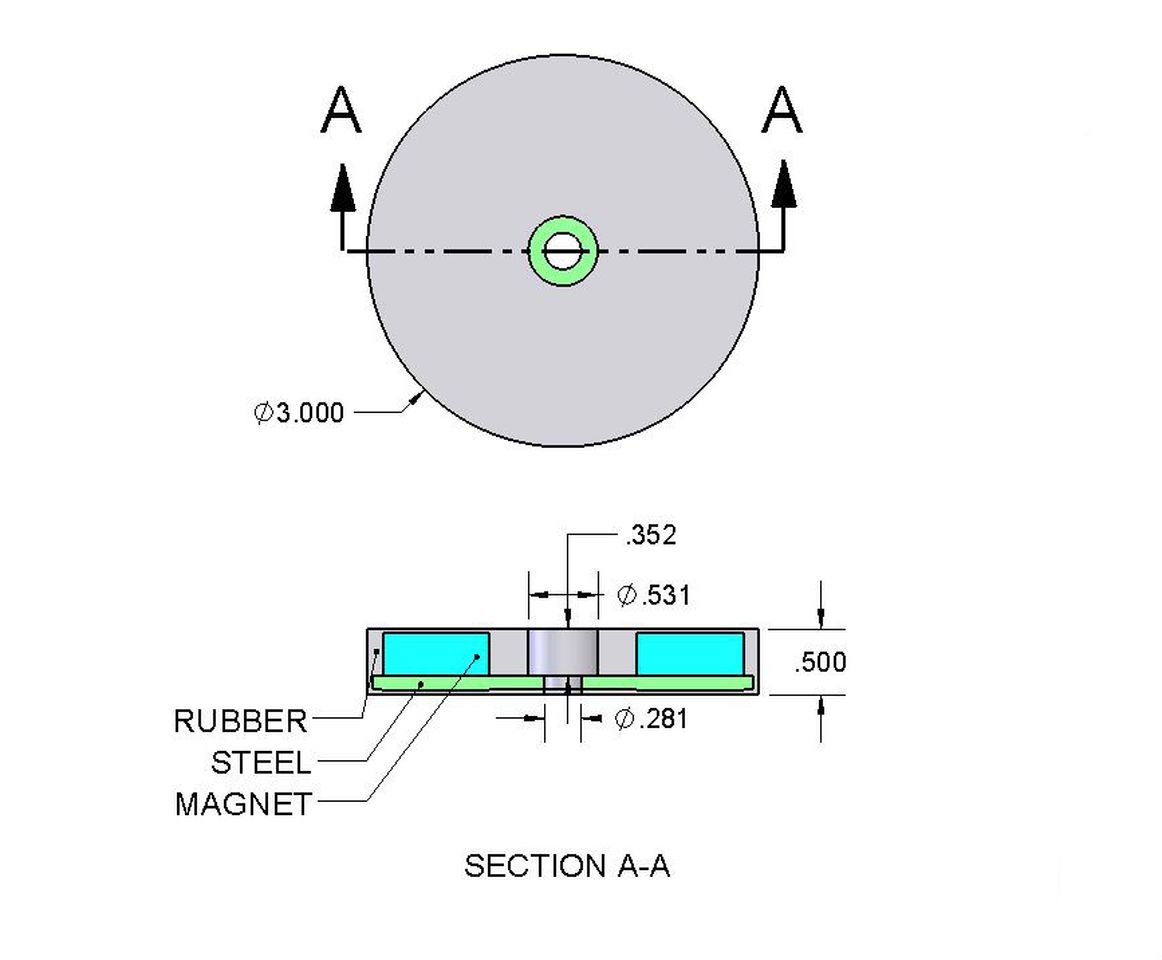 3 x 1/2 Inch Neodymium Rare Earth Rubber Coated Disc Mounting Magnet N42 (1/4"-20 screw) RMD-B-Z0