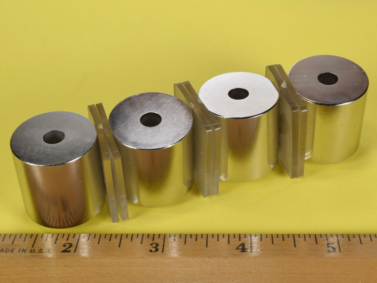 These rings are diametrically magnetized, which means they are magnetized