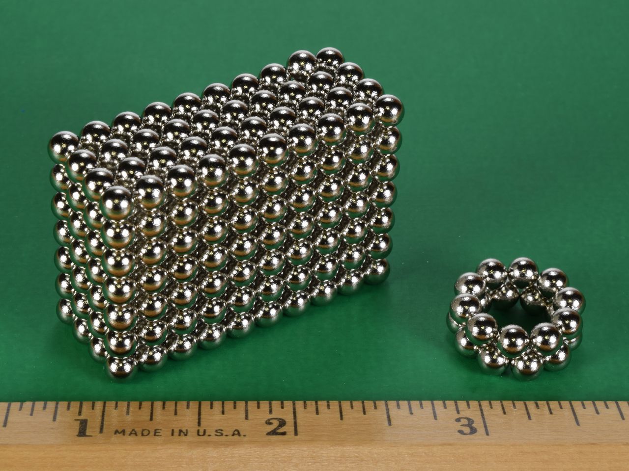These sphere shaped magnets are 3/16" in diameter. The north and south poles are located at opposite sides of the sphere.