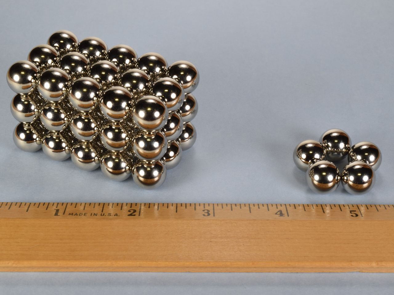These sphere-shaped magnets are 1/2" in diameter. They are quite a bit stronger than our 1/4" spheres and can pinch.