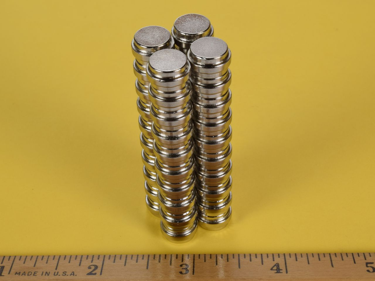 Coating: Most neodymium magnets are plated or coated in order to protect the magnet material from corrosion. Check out our Custom Magnets for unplated magnets and other coatings not stocked for this size magnet. Learn more about all available platings and coating in our What Magnet Coating Should I Use? article.Nickel-Copper-Nickel (Ni-Cu-Ni)