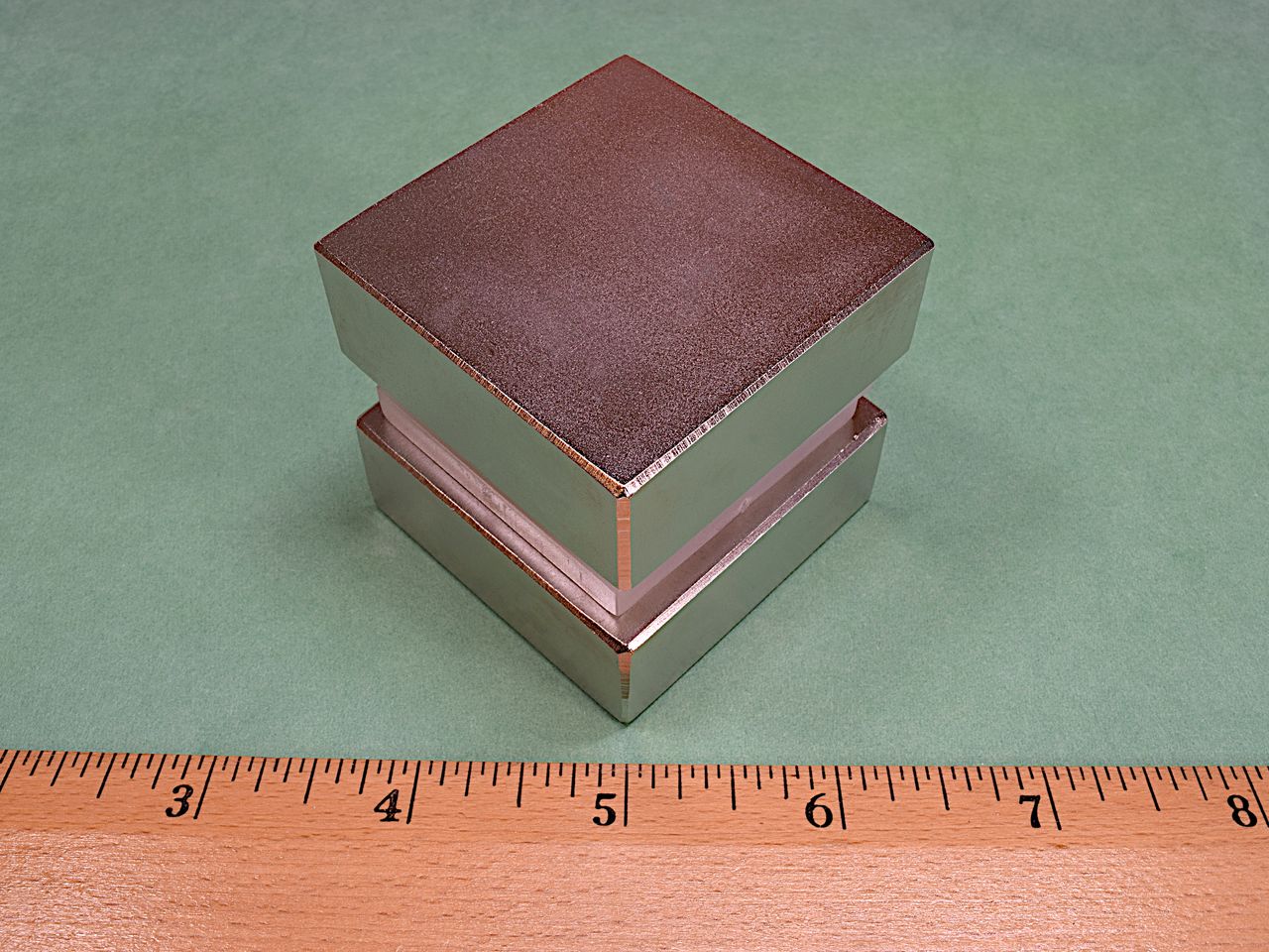 These might be surplus magnets, but they are still incredibly strong and dangerous if mishandled. One of these blocks has a pull force of over 150 lbs when stuck to a large, thick steel plate!