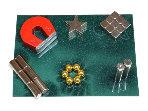 Various magnets and magnetic film for learning about magnets and science projects and experiments