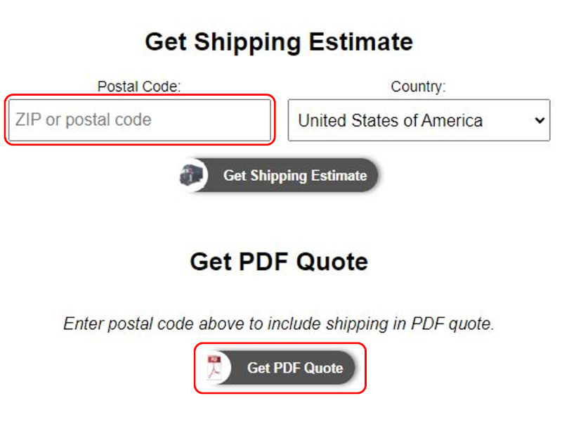- Enter postal code to include a shipping estimate in quote