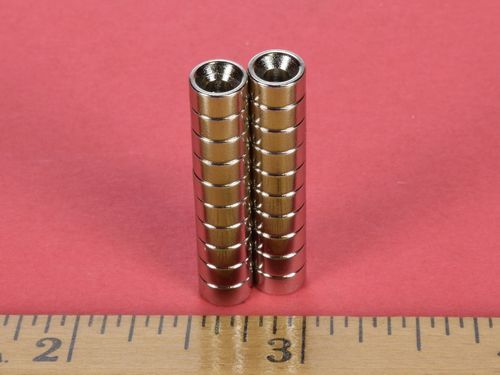 Strong countersunk ring magnets sized specifically for #2 flat-head screws.