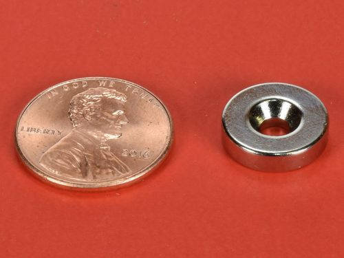 1/2 x 0.136 x 1/8 Inch Neodymium Rare Earth Countersunk Ring Magnet N42 (#4 screw)