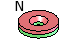 screws. The north pole is on the side of the magnet with the large hole,
