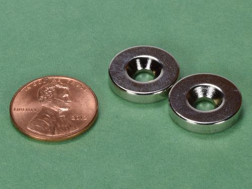 These rings are sold by the pair. One will have the north pole on the side with the large end of the hole and one will have the south pole on that side, so they will attract each other when they are screwed in.