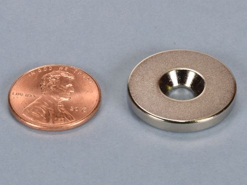 These are 7/8" diameter x 1/8" thick countersunk ring magnets sized to accept a #8 countersunk screw. The RE22CS-N is magnetized with the north pole on the countersink side.