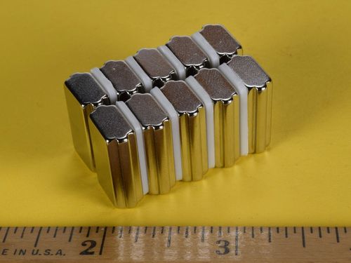 These stepped block magnets combine great holding power with outset steps on two sides. This often asked-for feature enables the use of many methods of securing the magnet in your assembly. For those trying to avoid the use of adhesives, this magnet is the answer.