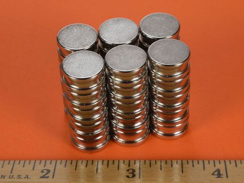 Coating: Most neodymium magnets are plated or coated in order to protect the magnet material from corrosion. Check out our Custom Magnets for unplated magnets and other coatings not stocked for this size magnet. Learn more about all available platings and coating in our What Magnet Coating Should I Use? article.Nickel-Copper-Nickel (Ni-Cu-Ni)
