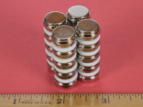 Coating: Most neodymium magnets are plated or coated in order to protect the magnet material from corrosion. Check out our Custom Magnets for unplated magnets and other coatings not stocked for this size magnet. Learn more about all available platings and coating in our What Magnet Coating Should I Use? article.Nickel-Copper-Nickel (Ni-Cu-Ni)