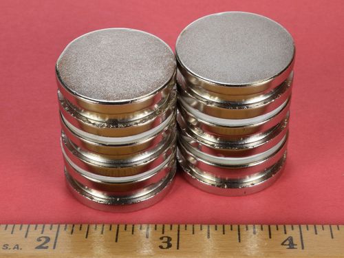 Coating: Most neodymium magnets are plated or coated in order to protect the magnet material from corrosion. Check out our Custom Magnets for unplated magnets and other coatings not stocked for this size magnet. Learn more about all available platings and coating in our What Magnet Coating Should I Use? article.Nickel-Copper-Nickel (Ni-Cu-Ni)