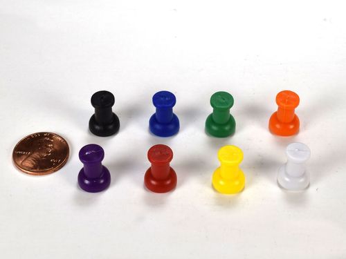 These neat magnetic thumbtacks (aka "pushpins") will hold 6 or more sheets of 8 1/2 x 11 paper securely to any metal surface. They can be used on a fridge, metal bulletin boards, filing cabinets and on other metal surfaces. They can even be used to hang things from drywall screws or nails in your walls! They are made of brightly colored plastic in a traditional thumbtack shape, with a super strong magnet disc on the bottom. They are a great addition to any home or office. They also make great gifts! The assortment will contain each of the colors of magnetic thumbtacks that we currently stock.